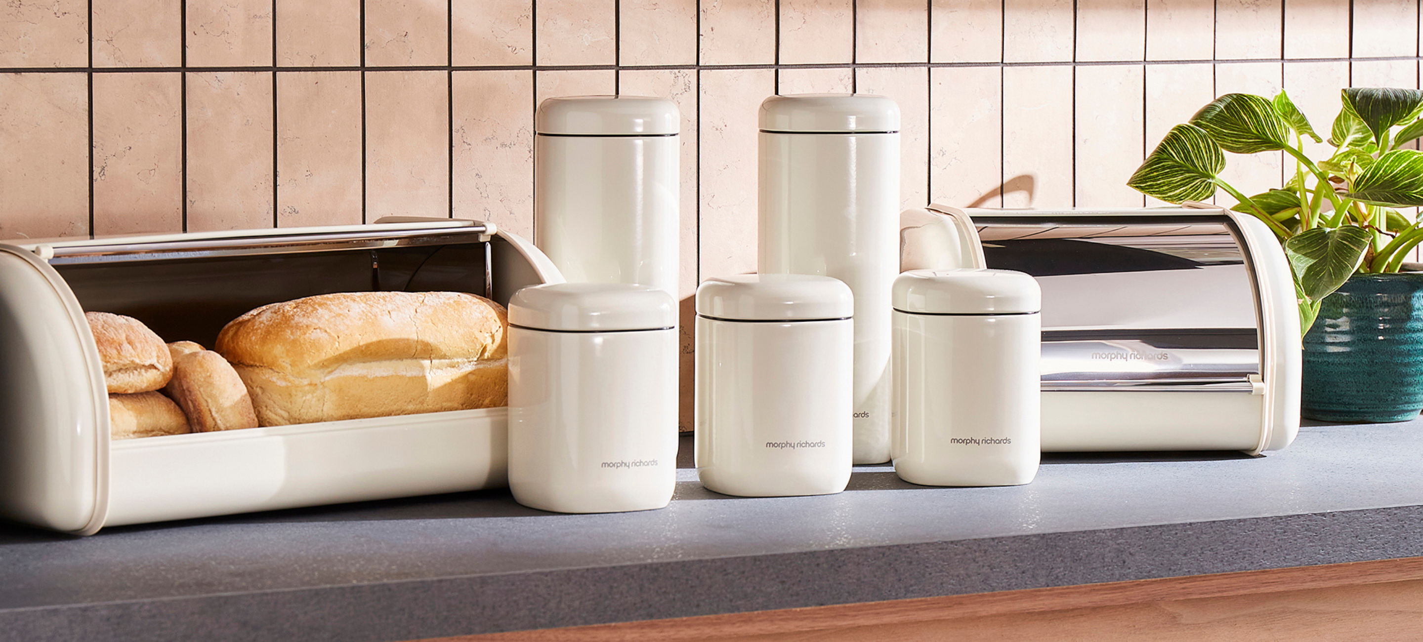 Get ready for our stylish new food storage range from elegant tea, coffee & sugar canisters to roomy cannisters for pasta and flour, as well as modern bread bins designed to keep your kitchen fresh and beautifully organised. Plus, they are design to match our Equip kettle & toaster range!