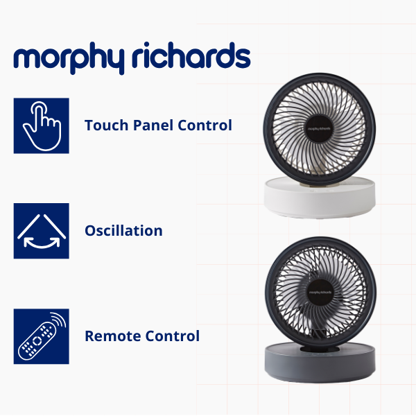 If you’re looking for a smaller fan that’s made for personal cooling, our desk fans are your go-to. These compact fans fit well on desks, bedside cabinets and other smaller spaces so you can enjoy a cool breeze in every room. Our desktop fans are also ultra quiet, making them great for places like offices and bedrooms where you want to keep noise to a minimum. And with both electric fans and USB-powered options, you can find the right fan for you. Enjoy a more targeted airflow with a table fan from Morphy Richards, ideal for keeping cool whilst working, studying and sleeping.