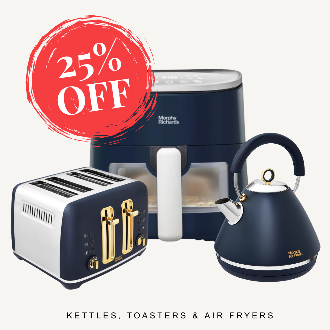25% off is automatically added to checkout when a set is added to checkout. Please note this does not work when you manually add a kettle, toaster and air fryer separately to the checkout.
