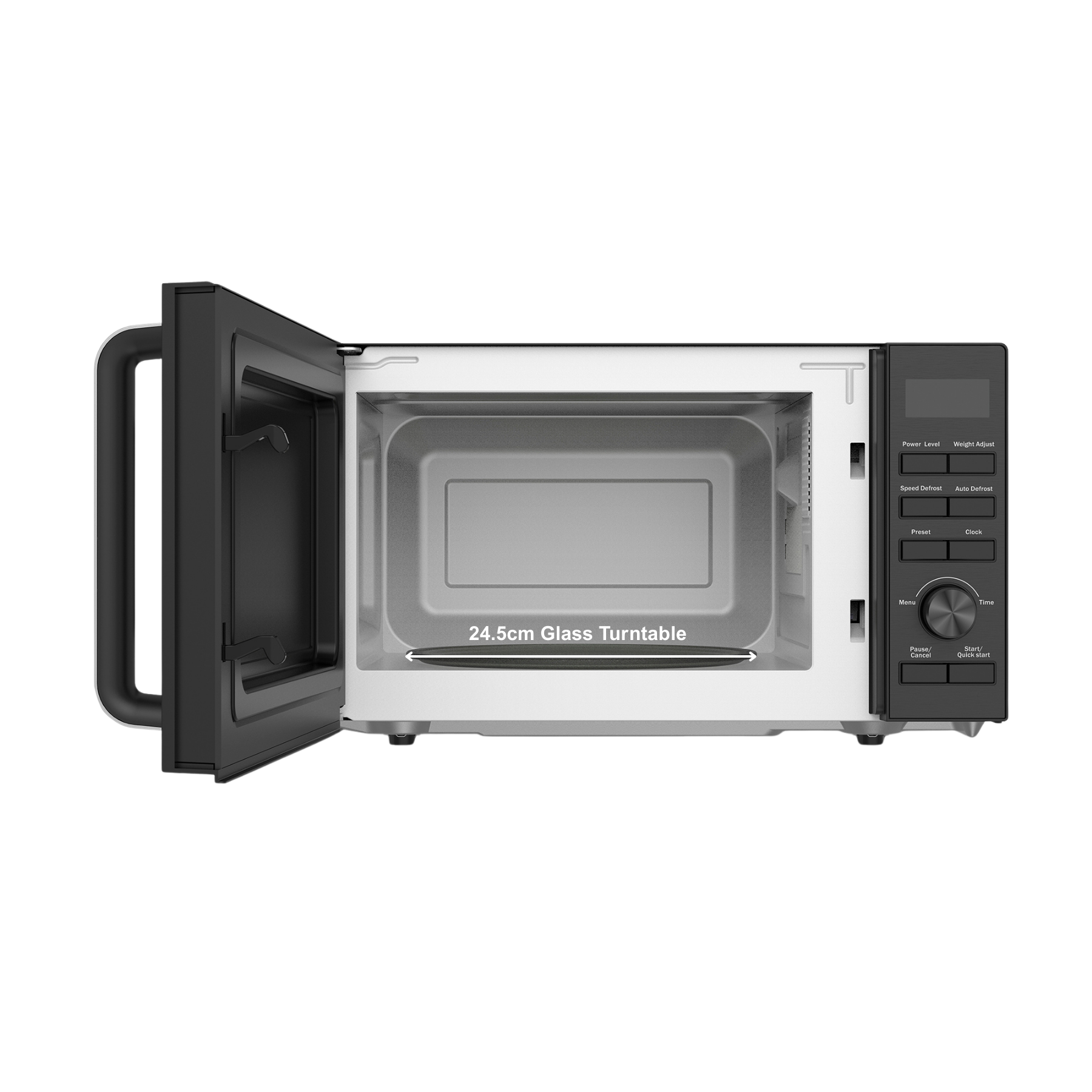 24.5cm Glass Turntable: The 24.5cm glass turntable smoothly spins food for an even cooking process.