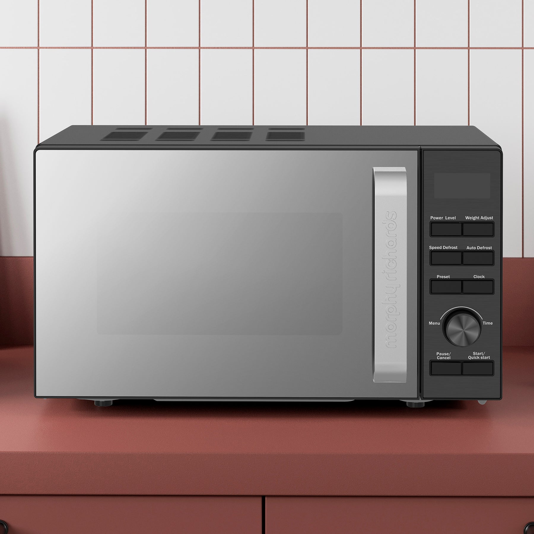Upgrade your kitchen with the Morphy Richards 800W 20L Digital Microwave, designed for efficiency and style. This microwave with a mirror door has 6 power levels including a defrost settings for full cooking control. We feel this is one of the best microwaves on the market thanks to its generous 20 litre capacity and 95 minute timer, making it perfect for family meals and reheating leftovers. This microwave is the perfect choice for upgrading your kitchen!