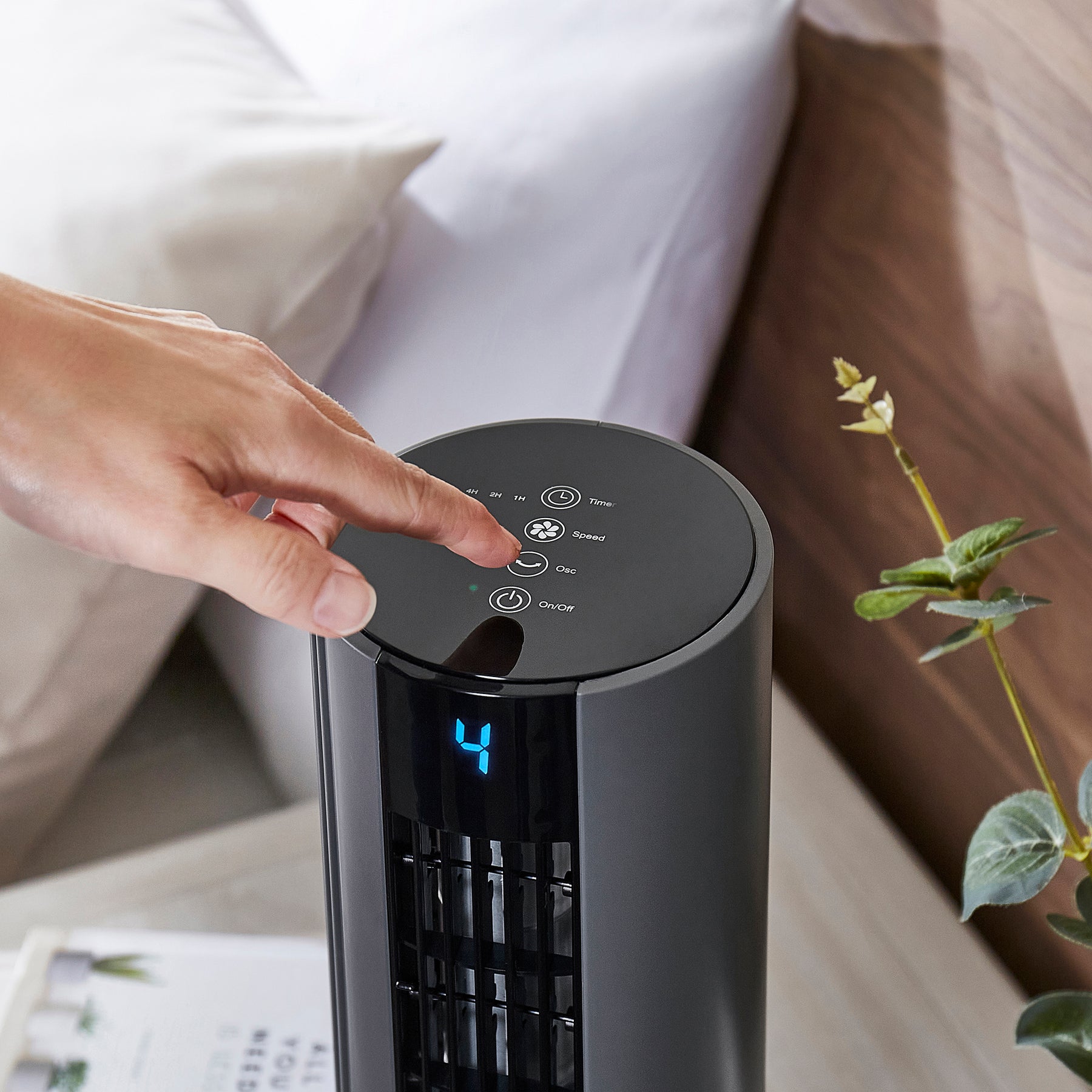 Our Air Flex 14" Tower Fan is designed with a built-in device charging port! Perfect for the warmer month for cooling and charging your phone overnight all in on appliance!