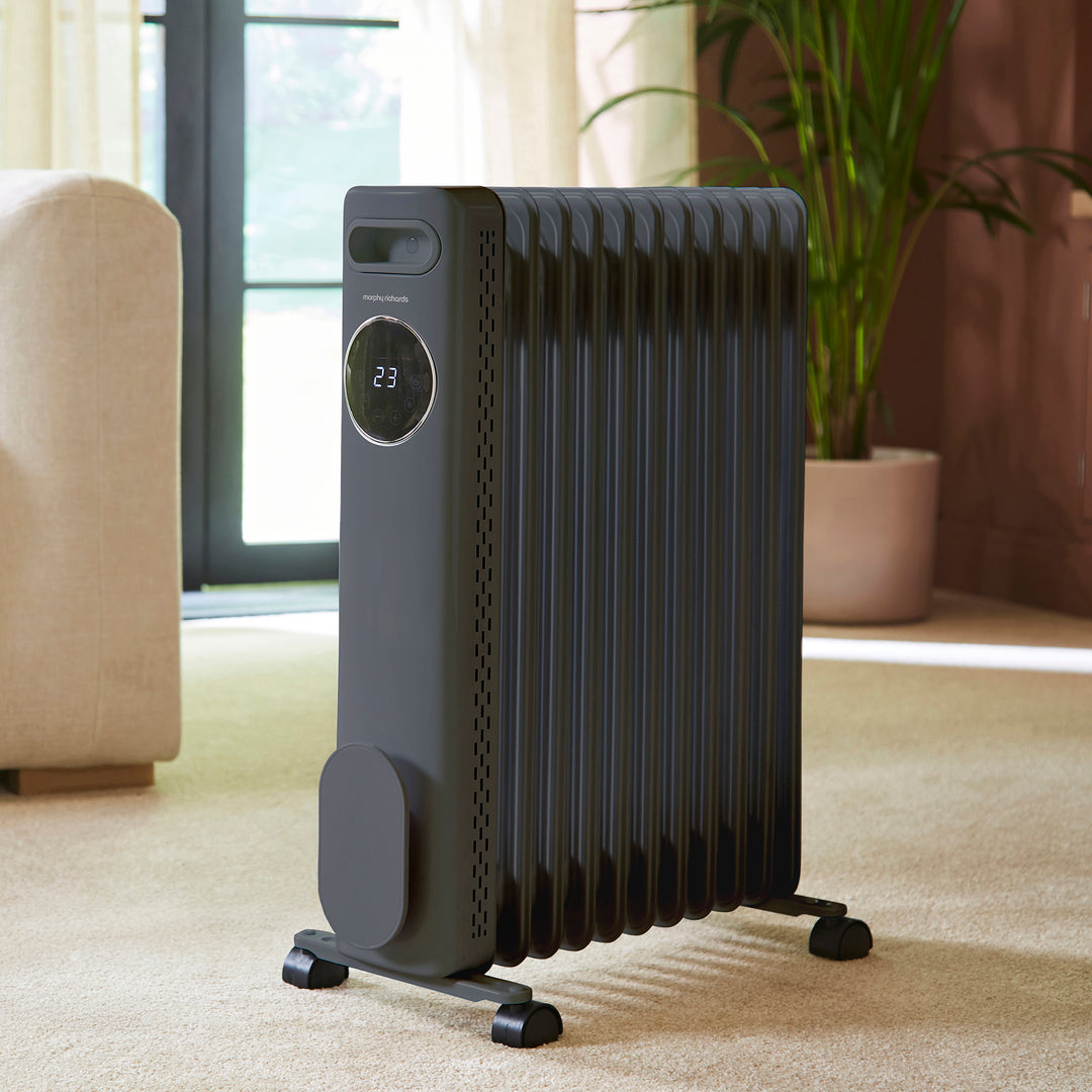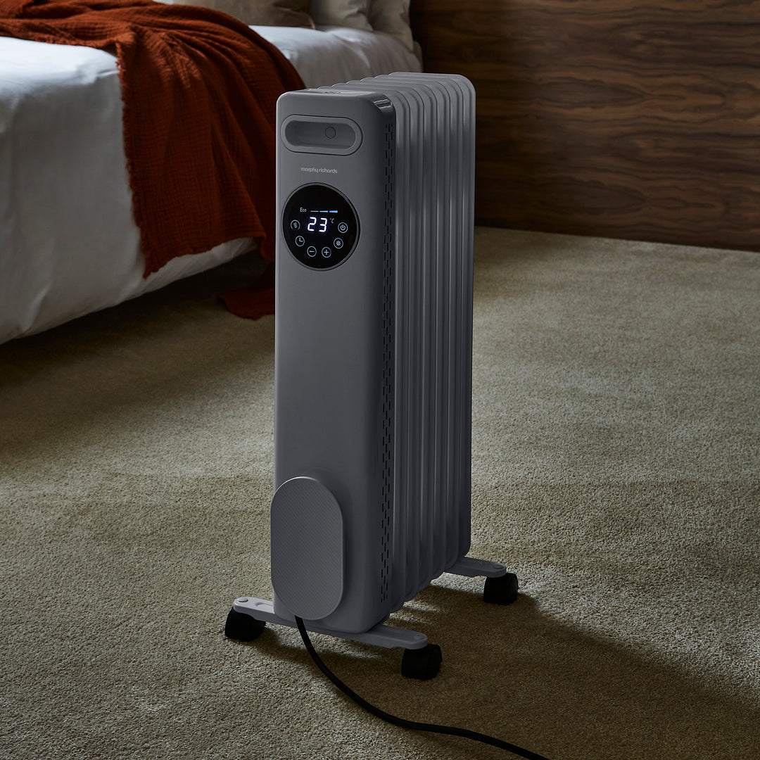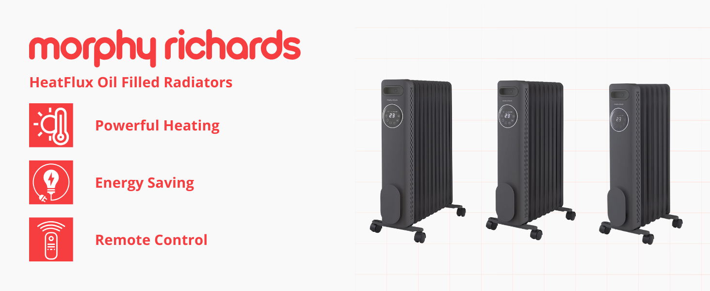 Heat your room with our HeatFlux 2.5kw Digital Oil Filled Radiator with Remote Control, a sleek and energy-efficient heating solution designed for ultimate convenience and safety. Designed to quickly heat rooms up to 25m2, this oil filled radiator promises quick heat distribution and powerful performance. For personalised warmth, simply choose between three temperature settings such as low, medium and high heat, and if required, customise further using the on/off timer function. Not to mention, you will save on energy bills with the Eco mode that is designed to automatically adjust when the room temperature is approaching the set temperature.