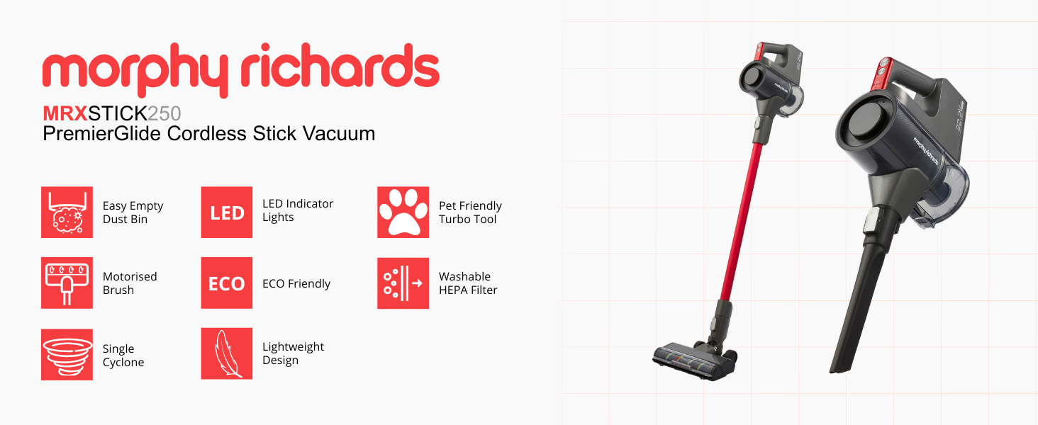 Our expert buyer selected the MRX Floorcare range to combine high-quality performance with sleek, modern design.