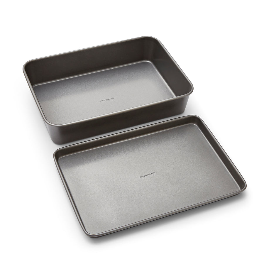 Our bakeware is made from heavy duty carbon steel. It is durable, preventing warping over time. This bakeware collection offers excellent heat distribution for even baking, from cakes to Yorkshire puddings every time.