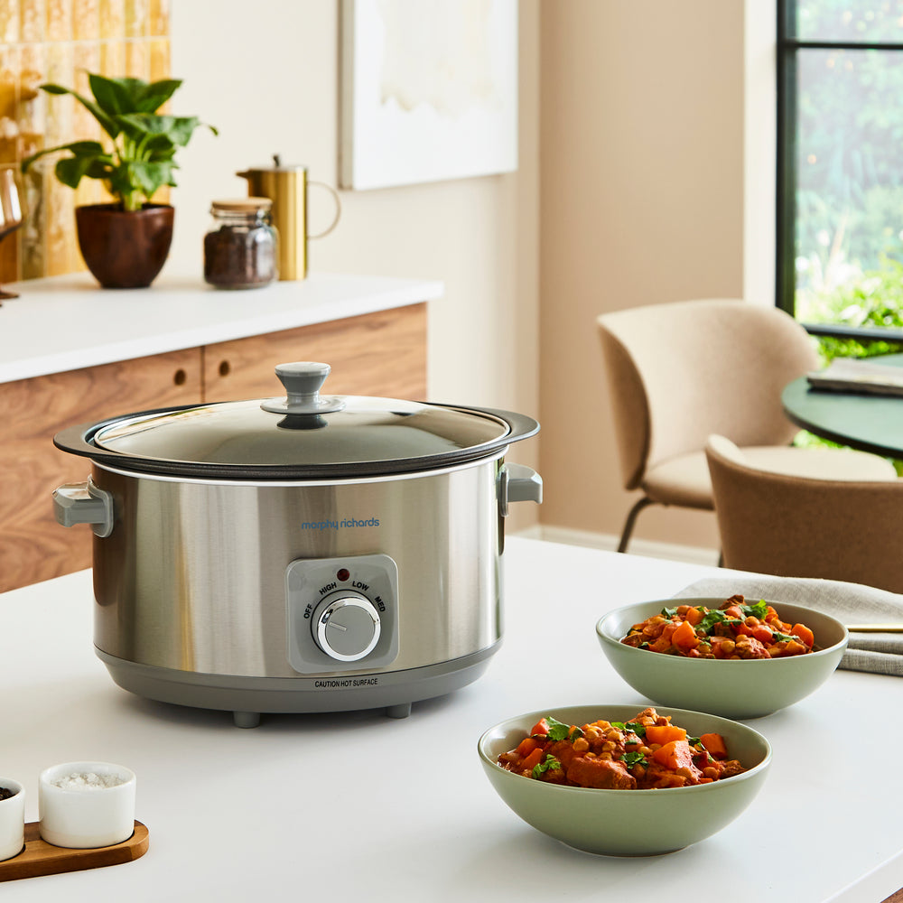 The Morphy Richards Stainless Steel 6.5L Slow Cooker also known as a crockpot boasts a generously sized 6.5L capacity making it ideal for large families or dinner parties and offers plenty of space to prepare and serve your favourite stews, soups, casseroles and more.