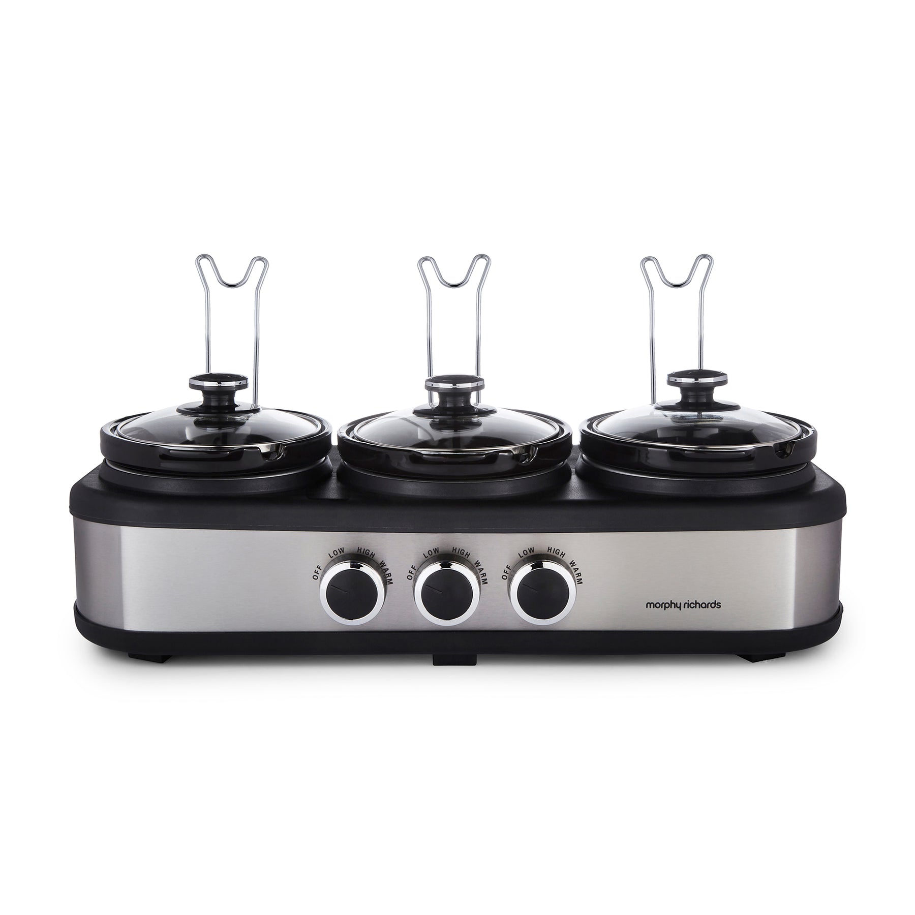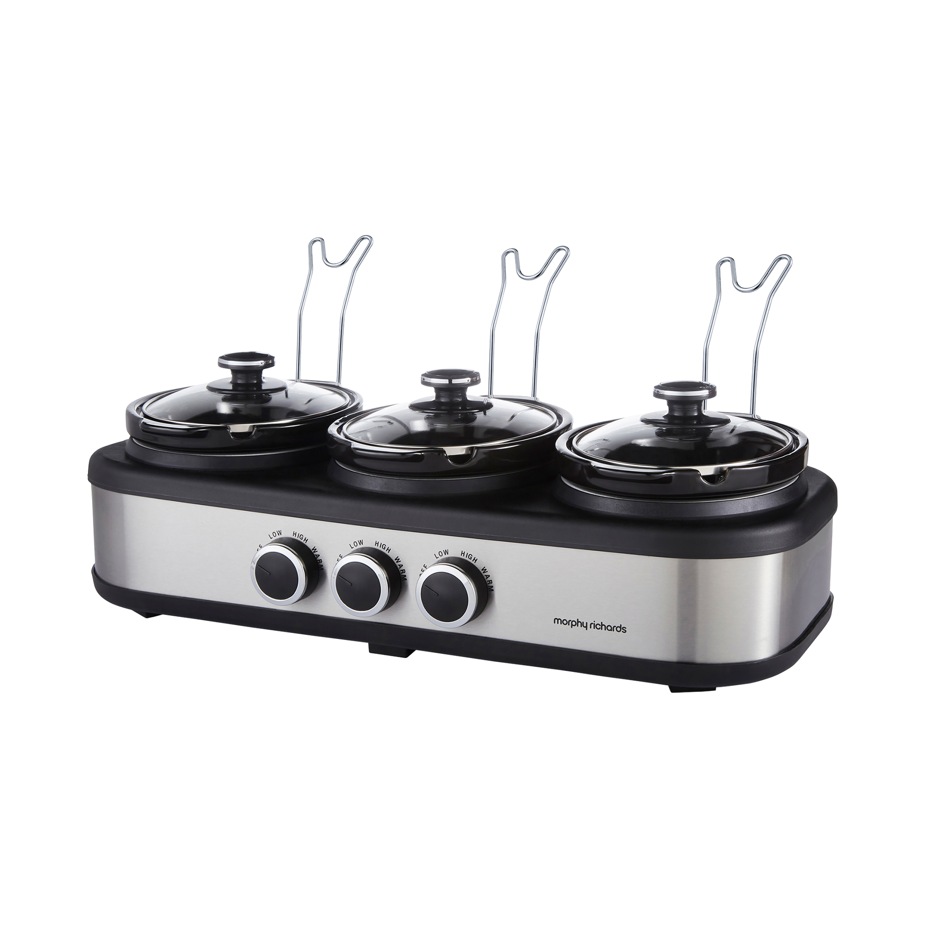 Looking to upgrade your slow cooker? Meet the Morphy Richards 3.9L TrioServe Three Pot Slow Cooker! If you’re holding a dinner party with friends, cooking for the family, or batch cooking, this slow cooker will become your favorite kitchen gadget. Thanks to the three separate ceramic pots and individual temperature control, cook three different meals at the same time, making it ideal for multiple serving options and accommodating dietary requirements. For example, serve three recipes at once, such as a chicken curry, a vegetable curry, and a chilli.